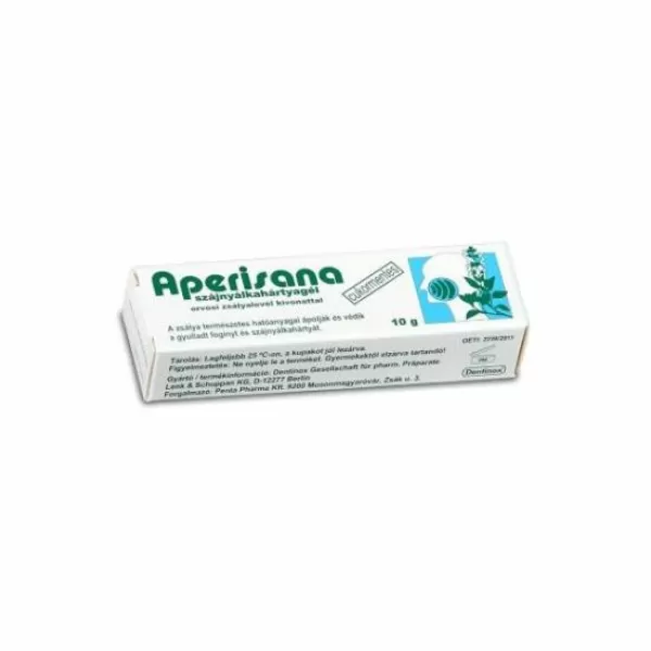 APERISANA GÉL ZSÁLYA KIVONATTAL 10GR. Aperisana gél a szájnyálkahártya különböző eredetű (sérüléses vagy fertőzéses) gyulladásainak helyi kezelésére alkalmas, például fogínygyulladás, protézis okozta feltörés és afta stb.