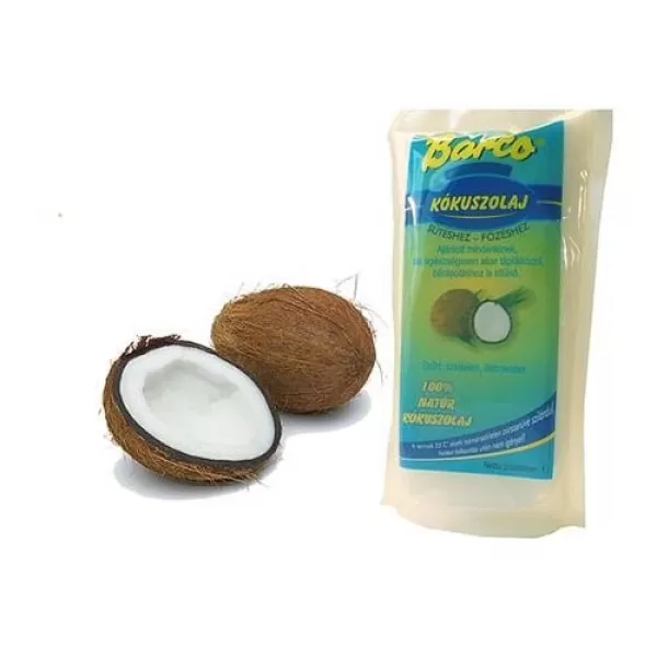 Barco kókuszolaj sütéshez-főzéshez, 1000 ml, egy szűrt, színtelen és illatmentes kókuszolaj, amely sokféleképpen felhasználható, beleértve a bőrápolást is. Termék Jellemzői