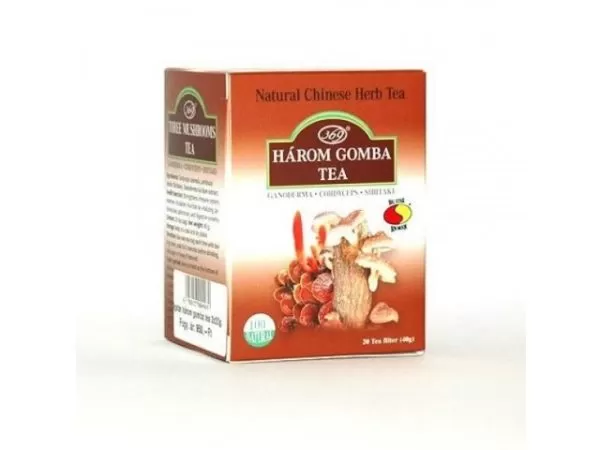 HÁROM GOMBA TEA FILTERES Három gomba tea az egész szervezetünkre pozitív hatással lehet, javítja közérzetünket, beindíthatja szervezetünk öngyógyító képességét. A tea 3 féle gyógygombából készült: