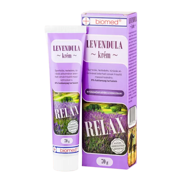 A Biomed Levendula Krém hatóanyaga is Franciaországból származó nagy tisztaságú levendulaolaj, amelyet frissítő masszírozásra ajánlunk.
