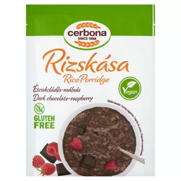 Cerbona Vegán étcsokoládés rizskása málnával glutén- és laktózmentes 45 g