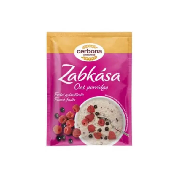 Összetevők: lapított zabpehely (glutén) 52%, kukoricakeményítő, cukor, sovány tejpor, glükózszirup, inulin (növényi rost), fagyasztva szárított gyümölcsdarabok (feketeribizli 0,6%, málna 0,5%), aromák, étkezési só, savanyúságot szabályzó anyag: almasav. Dióféléket, földimogyorót, szezámmagot és szójából készült terméket tartalmazhat!