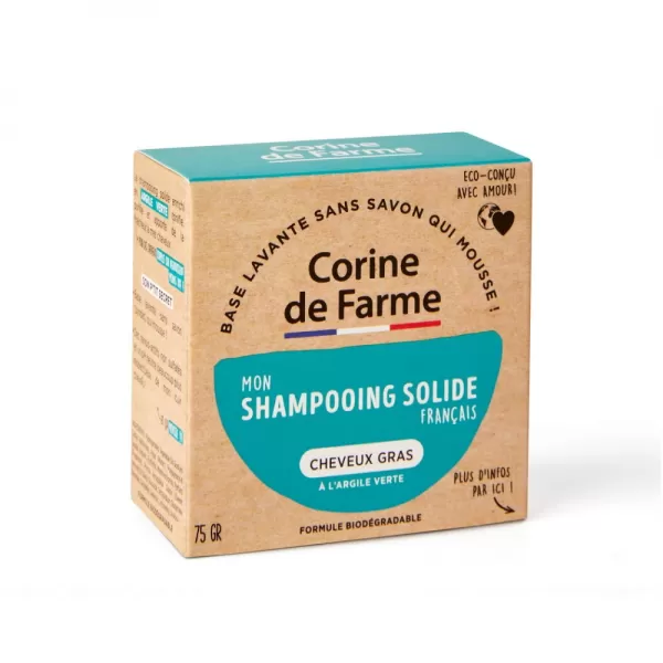 A Corine De Farme szilárd sampon zöld agyaggal gazdagított formulája segít visszanyerni hajad természetes szépségét. Erősíti és tisztítja a hajat, miközben frissességet és rugalmasságot biztosít. pH-semleges, szulfát- és szappanmentes összetevői révén kevesebb zsírosodást eredményez.A Szilárd Sampon Előnyei