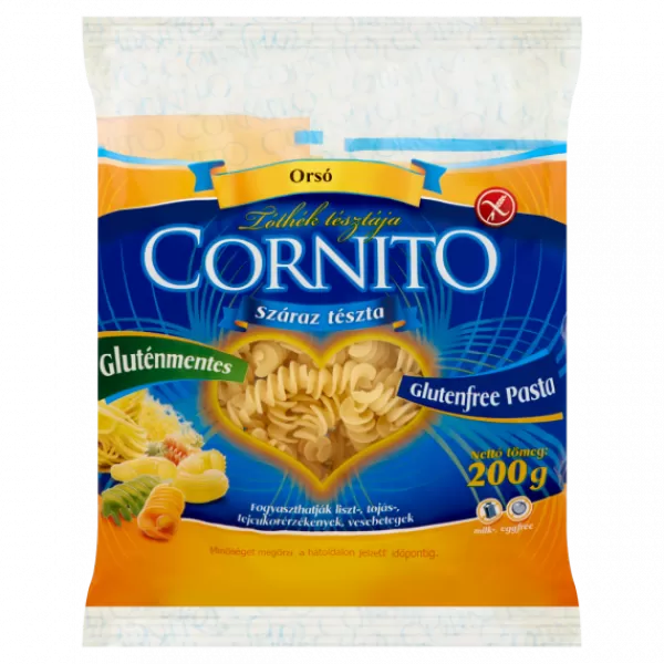 CornitoTM Tóthék tésztája száraztészta kiváló minősége a receptúrának, és a kiváló olasz gépeknek köszönhető. A tészta íze közelít a durumtészta ízéhez, tehát élvezetes, színe a kukorica alapanyagnak köszönhetően szép sárga, és az állagát főzés után is kiválóan megtartja. Fogyaszthatják: Lisztérzékenyek, tojásérzékenyek, tejcukorérzékenyek, szójaérzékenyek, vesebetegek, tojást nem tartalmaz, így koleszterinmentes.