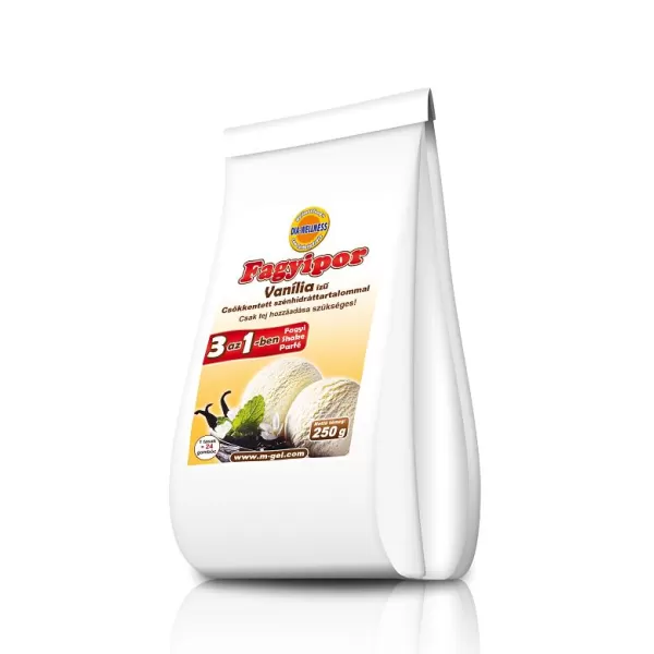 Csökkentett szénhidráttartalmú fagylaltpor édesítőszerrel, diétás étkezés megvalósításához. Egy csomag fagylaltpor tartalma kb. 24 gombóc fagylalt elkészítésére alkalmas. A cukor helyett eritritet, xilitet és maltitot tartalmazó ételek fogyasztása, a fogyasztást követően kisebb mértékű vércukorszint emelkedést okoz, mint a cukrot tartalmazó ételek. Figyeljen a kiegyensúlyozott és változatos táplálkozásra.