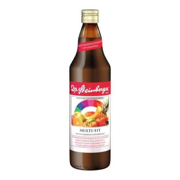 Dr. Steinberger Multi-Fit ital egy 100%-os direktlé, nem koncentrátumból készült ital, amely 11-féle gondosan összeválogatott gyümölcs frissen préselt levéből készül. A termék 10 vitaminnal és az A-vitamin provitaminjával dúsított. Már napi egy pohár elfogyasztása biztosítja a napi szükségletet ezekből a fontos vitaminokból. Az ital nem tartalmaz hozzáadott cukrot, mégis finom ízű.