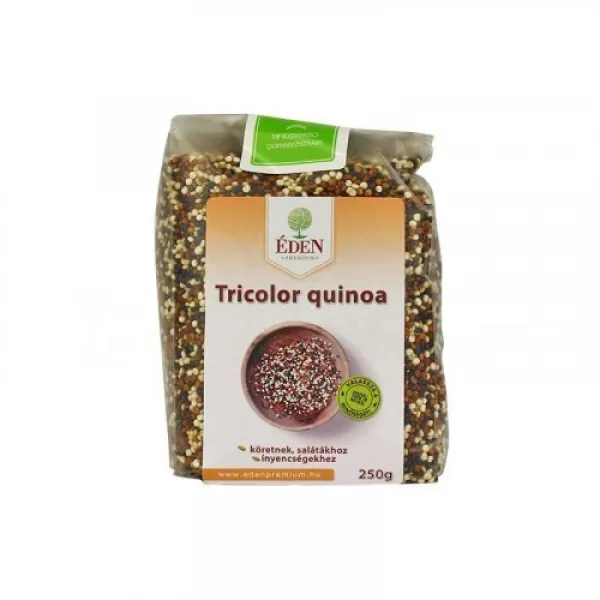 Elegendő folyadék fogyasztása mellett magas rosttartalma által tisztítja, méregteleníti a bélrendszert. Lassú felszívódású szénhidrátot tartalmaz, így hosszan tartó jóllakottság érzetet biztosít. Kiemelkedő vitamin-és ásványi anyagforrás. A tricolor quinoa semleges íze és egyszerű, gyors elkészítése miatt alkalmas köretnek, édességekhez, kásákhoz, salátákhoz, gyümölcsökhöz. A fehér szemek lágysága, a vörösek köztessége és a feketék roppanóssága adja a tricolor quinoa különlegességét.