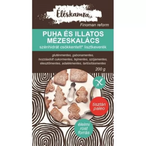 Elkészítési javaslat: keverj el 3 db szobahőmérsékletű M-es tojást (kb. 150 g) 70 g mézzel, 50 g poreritrittel, 20 ml friss citromlével, 80 g lágy kókuszzsírral, 30 ml vízzel. Keverd hozzá a mézeskalács lisztkeveréket. Pihentesd a tésztát hűvös helyen 30 percig. Szilikonos lapon (kevés liszten) gyúrd fényes tésztává, majd nyújtsd el kb. 5 mm vastagságúra. Enyhén lisztes felületen és szúrd ki formákkal. Ismételd, míg el nem fogy a tészta. Rakosgasd távolabb egymástól tepsire a kekszeket, kend le tojásfehérjével. 180 fokra melegített alsó-felső fokozatos sütőben kb. 10-12 perc alatt sül puhára. Kihűlés után díszítsd kívánságod szerint poreritritbe forgatva, csokimázzal vagy írókával. Dobozban tárolva 3-5 napig marad puha. A méz miatt kompromisszumos paleo. Méz nélkül: 120 g poreritrittel, 40 ml vízzel, többi hozzávaló ugyanaz.