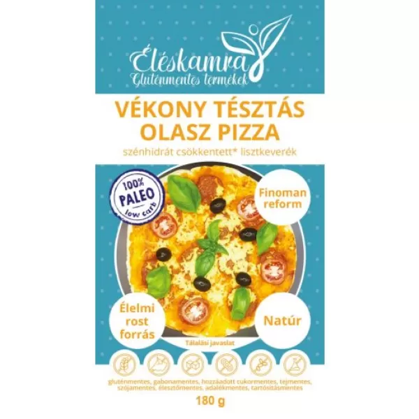 Egy nagy, 32 cm-es családi pizza elkészítéséhez elegendő paleos lisztkeverék, olasz ízekkel fűszerezve. A tészta lágyan omlós, nem túl tömör, és az összeállítása után nem szükséges elősütni, azonnal rákerülhetnek a legkedveltebb feltétek és mehet a forró sütőbe.