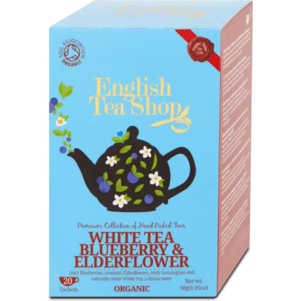 20 filter Bio tea. Az English Tea Shoptól megszokott igazi angol minőség, az áfonya és a bodza frissítő ízével.