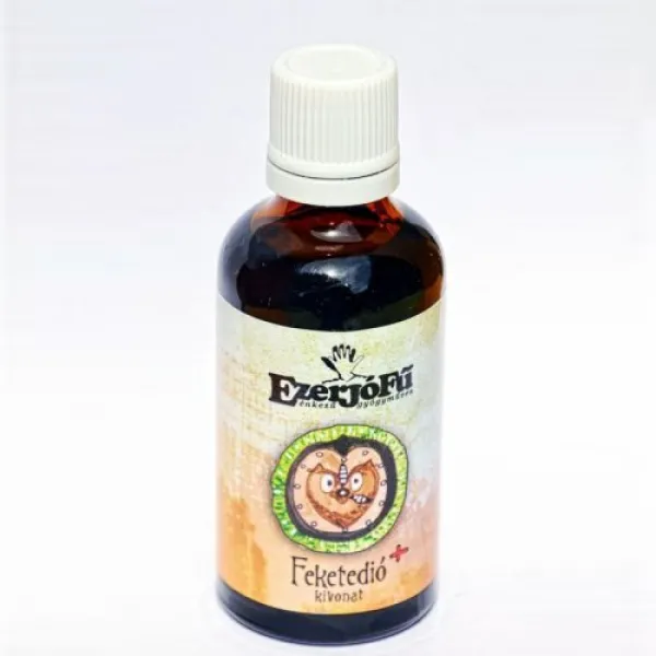 Ezerjófű Feketedió kivonat 50mlKorábban így ismerhette:Ezerjófű Feketedió tinktúraTeljesen alkoholmentes (0%), ami rendkívül előnyös az eddigi 40 százalék alkohol tartalmú termékekkel szemben. Ez lehetővé teszi több termék együttes használatát.