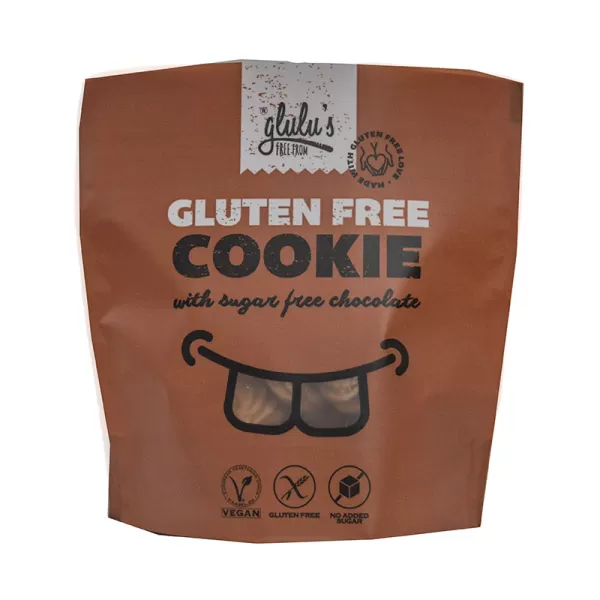 Glulu FreeFrom csokis süti, hozzáadott cukor mentes, 100 g. Termékeink válogatott, minőségi alapanyagokból készülnek, tartósítószer hozzáadása nélkül. Az édes aprósüti, sós snack és cukormentes keksz kínálatunkból a lisztérzékenyek, cukorbetegek, a tejtermékekre érzékenyek, az IR és FODMAP diétát követők, valamint a vegán konyhát kedvelők is biztonsággal választhatnak.