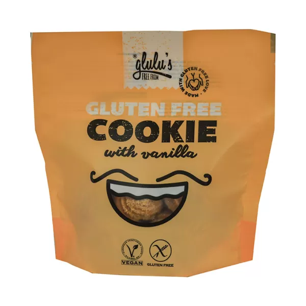 Víz, cukor, barna rizsliszt, kókuszolaj, fehér rizsliszt, fehér rizsdara, gluténmentes zabliszt, sütőpor (térfogatnövelő szerek (nátrium-karbonátok, difoszfátok), kukoricakeményítő), útifűmaghéj, természetes vanília aroma 0,2% (aroma anyagok, propilén-glikol), térfogatnövelőszer (nátrium-hidrogén-karbonát), himalája só. Nyomokban mandulát és szezámmagot tartalmazhat!