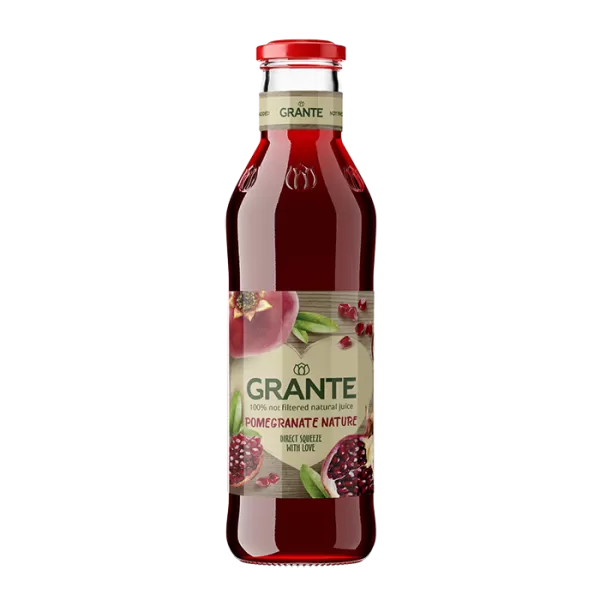 A közvetlen préseléses technikánk lehetővé teszi, hogy további szűrés nélkül, minimalizálva a pasztörizálást a lehető legmagasabb vitamin és ásványi anyag tartalmú egészséges gyümölcslevet állítsunk elő. Az igazi NFC (nem koncentrátumból készült) gránátalmalevek megtartják a gyümölcs jellegzetes karakterét, természetes savanykás ízét. A gyümölcslé antioxidánsokban rendkívül gazdag és bőven tartalmaz C, B6 és B12 vitamint. A „Grante-natúr szűretlen gránátalmalé” napi fogyasztása hozzájárul testünk szépségének és egészségének megőrzéséhez.