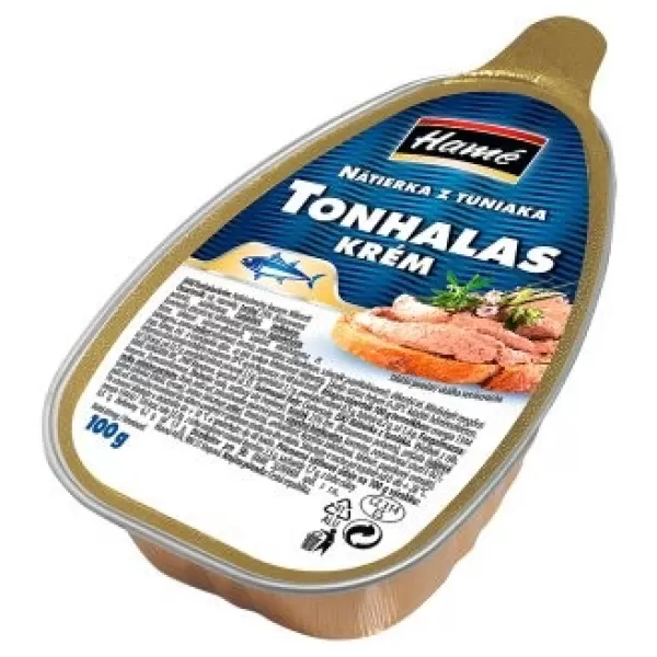 Összetevők: ivóvíz, repceolaj, TONHAL 25% (Katsuwonus pelamis), ízesítő készítmény (SZÓJALISZT, TEJFEHÉRJE, keményítő, étkezési só, sűrítőanyag: guargumi, TOJÁSFEHÉJE, fűszerek, ízfokozó: nátrium-glutamát, szárított zöldségek (vöröshagyma, fokhagyma), aroma (ZELLERT tartalmaz), dextróz, antioxidáns: aszkorbinsav, színezék: paprikakivonat), napraforgóolaj, étkezési só.
