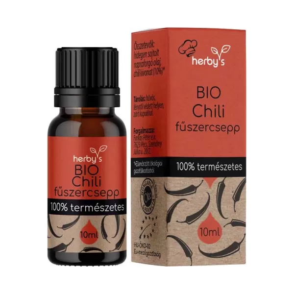 A Herby’s Bio Chili fűszercsepp 100% természetes összetevőkből készült, és ideális választás minden ínycsiklandó ételhez, amely egy kis csípősséget igényel. A fűszercsepp praktikus adagolást tesz lehetővé, így könnyedén hozzáadhatod kedvenc ételeidhez.