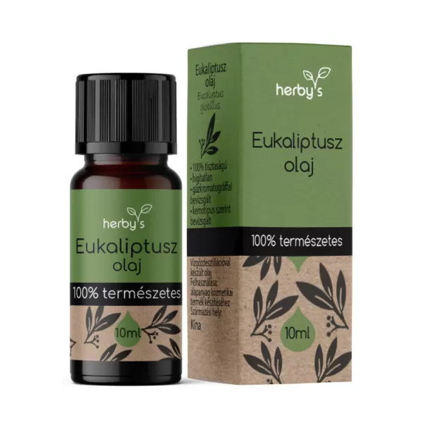 Herby's eukaliptusz olaj egy természetes illóolaj, amely 10 ml-es kiszerelésben kapható. Az eukaliptusz olaj híres frissítő és tisztító hatásáról.