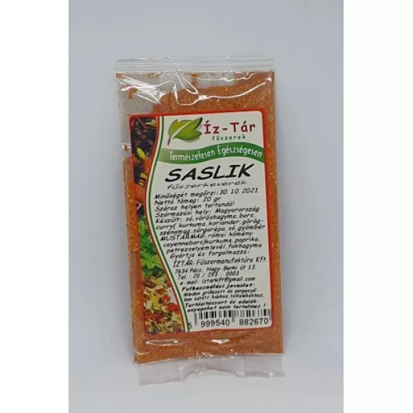 Válaszd az Íz-Tár fűszerkeverék saslik 20 g-ot, és élvezd a friss, ízletes ételeket akár a családdal, akár baráti társasággal, egy tökéletes grillparti keretein belül!