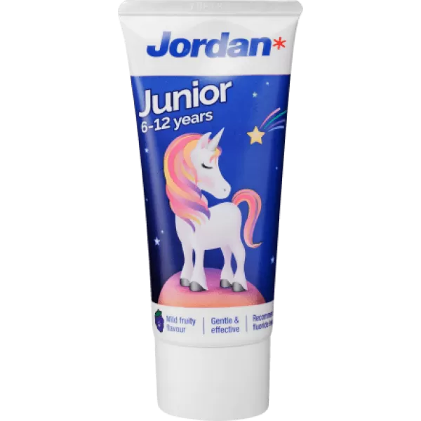 A Jordan gyermek fogkrém kifejezetten 6-12 éves gyerekek számára készült. A termék segít a fogak védelmében és megerősítésében. Különböző ízekben kapható, de a minta sajnos nem választható meg.