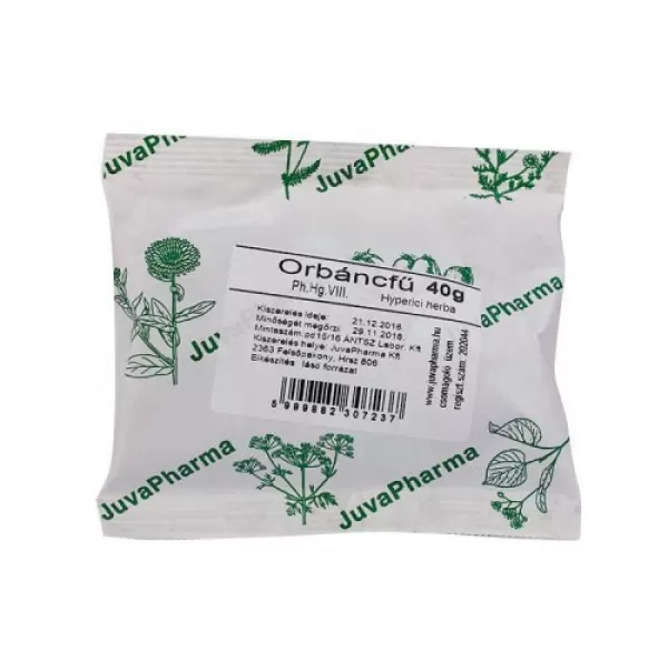 JUVAPHARMA ORBÁNCFŰ TEA Az orbáncfű teáját sokan használják idegeskedés, depresszió, alvászavarok ellen, de alkalmazzák bőrgyulladások, nehezen gyógyuló sebek kezelésére is. Jótékony hatással van az emberi szervezetre gyomorfekély vagy vese- és epebántalmak, továbbá idegi eredetű gyomor-bélrendszeri panaszok esetén. A száj belső sérülései ellen szintén ajánlott.