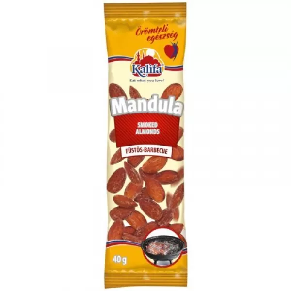 Termékleírás: Füstölt ízesítésű, sós pörkölt mandulabél védőgázas csomagolásban.