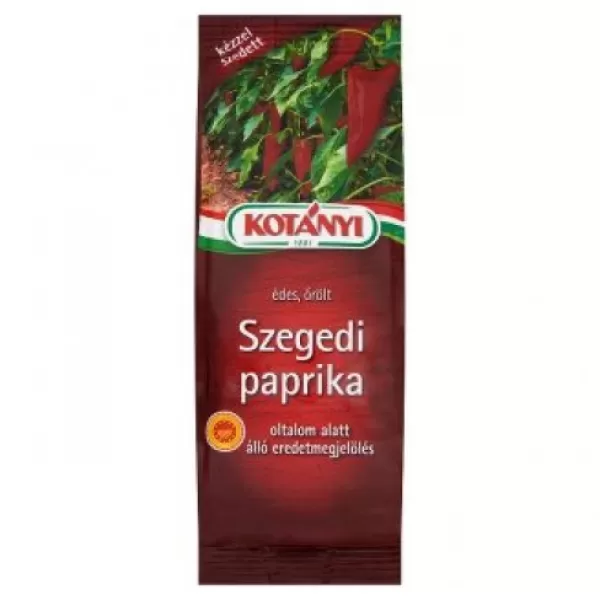 A Kotányi márkanév 1881 óta egyet jelent a kiváló minőségű, legnemesebb alapanyagból készült őrölt paprikával. A LEGENDÁS KOTÁNYI PAPRIKA: nemesített vetőmagból nevelt, tradícionális szegedi fajta, kézzel szedett, gondosan válogatott, 100% magyar paprika.