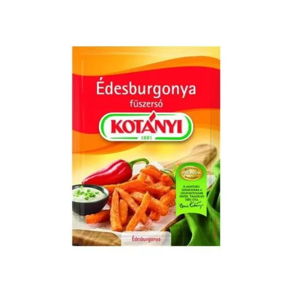 Fűszerkeverék édesburgonyához. A Kotányi Édesburgonya Fűszerkeverék tökéletes választás, ha szeretnéd különleges ízekkel feldobni a köreteidet. E fűszerkeverék segítségével a sült vagy főtt édesburgonya hamar a családi kedvenccé válik. Használata egyszerű: csak szórd rá a készítményből a kívánt mennyiséget az édesburgonyára, majd süsd vagy főzd meg a megszokott módon.