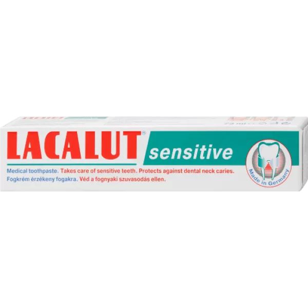 A Lacalut Sensitive preventív (megelőző) hatású fogkrém kíméli az érzékeny fogakat és véd a fogszuvasodás ellen. Kíméletesen tisztítja az érzékeny fogakat és fognyakat.