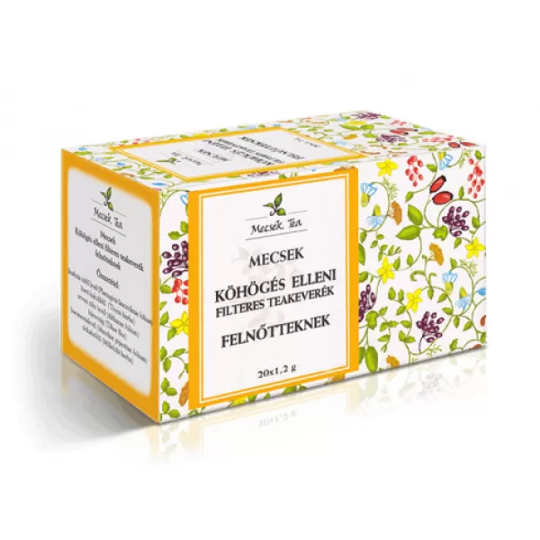 A Mecsek köhögés elleni, felnőtt tea filteres változata 20 csomagolást tartalmaz, mindegyik 1,2 g teát tartalmaz. A Mecsek teák a legfinomabb gyümölcsökből, gyógynövényekből és valódi tealevelekből készülnek. Ezek a magas minőségű alapanyagok teszik igazán különlegessé teáinkat.