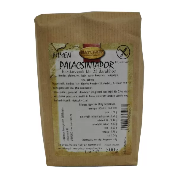 MiMen minden mentes palacsinta lisztkeverék egy gluténmentes célliszt, ami minden más allergéntől is mentes. Egy zacskó gluténmentes palacsintapor kb. 25 db palacsinta elkészítéséhez elegendő.