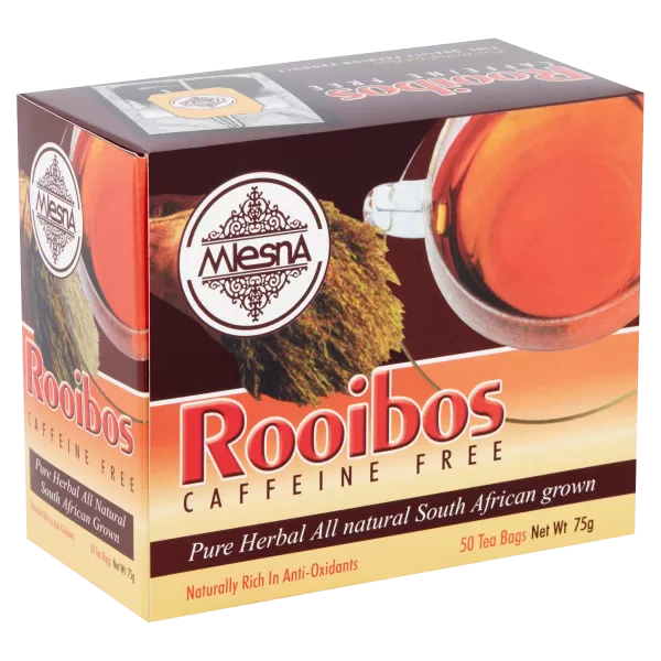 Mlesna rooibos vörös tea 50x2g, azaz összesen 100 g. A termék filteres kiszerelésben érkezik, és a Minőségvár Kft. forgalmazza.