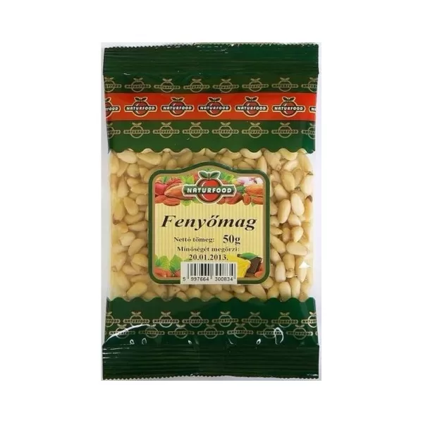 Összetevők: fenyőmag. A terméket magában fogyasztva vagy müzlik, sütemények, töltelékek készítéséhez, saláták ízesítésére ajánljuk, nyersen és pörkölve egyaránt. Fénytől védett, száraz, hűvös helyen tárolandó. A termék földimogyorót, dióféléket, szezámmagot felhasználó üzemben készült.