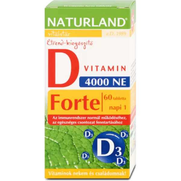 A Naturland D-vitamin forte tabletta hozzájárul az egészséges csontozat, az egészséges izomfunkció és a normál fogazat fenntartásához. A D-vitamin támogatja a kalcium és foszfor normál felszívódását, valamint az immunrendszer megfelelő működését.