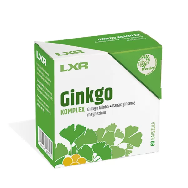 Ginkgo biloba kivonat, más támogató összetevők, kapszula burkolat.