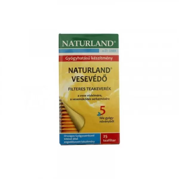 A Naturland vesevédő tea 25 filtere a vese védelmére, a veseműködés serkentésére, valamint a vesekő újraképződésének megakadályozására javasolt.