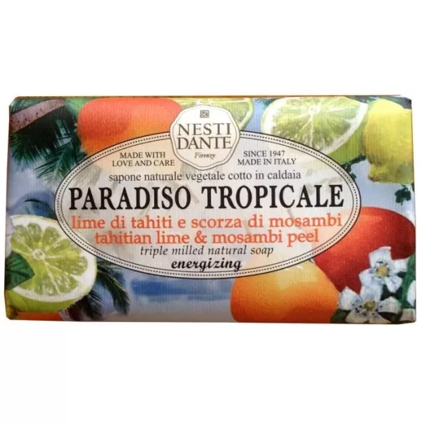 A megszokott Nesti Dante szappanok egzotikus, trópusi illatokban. A tahiti lime és a mosambi (édes lime) héjának frissítő keveréke. Energizáló hatású, ezért reggeli tusoláshoz kifejezetten ajánljuk!