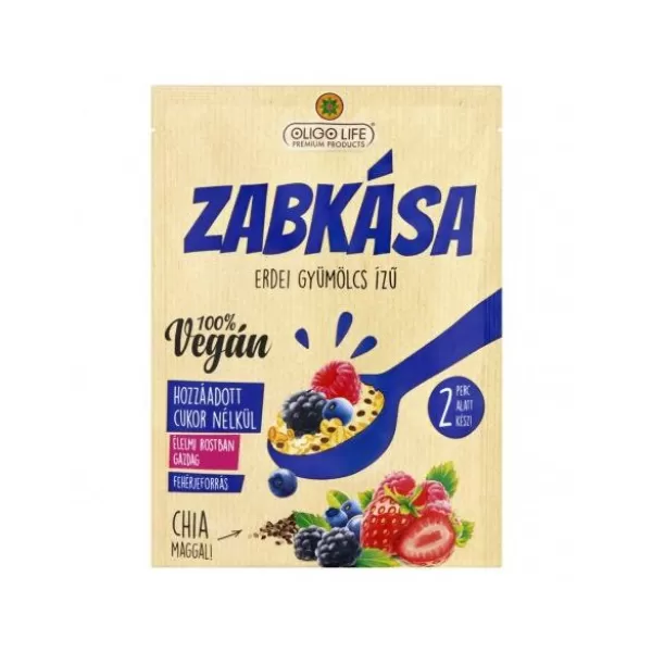 Oligo Life zabkása erdei gyümölcsös 65g - Édesen egészséges reggeli, amelyet pillanatok alatt elkészíthetünk. Rostban gazdag és kitűnő fehérjeforrás, nem tartalmaz hozzáadott cukrot sem. Megfelel a vegán étkezési feltételeknek, így nem csak tejjel vagy vízzel, hanem alternatív növényi italokkal is elkészíthető. Próbálja ki a többi ízben is!Elkészítési javaslat: