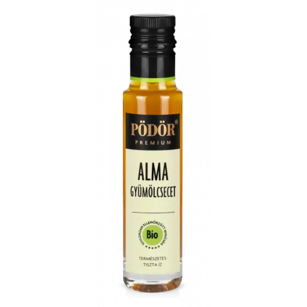 A Pödör prémium Almaecet tipikus, intenzív gyümölcs ízét a minőségi bio alma, a speciális tárolási technológia és a sok éves tapasztalat biztosítja. 100% természetes, fahordóban érlelt gyümölcsecet, kizárólag minőségi, szigorúan ellenőrzött és válogatott, friss bio alma levéből erjesztve.