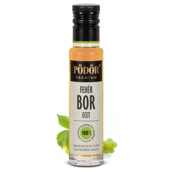 A Pödör Fehérborecet tipikus, intenzív ízét a minőségi fehérbor, a speciális tárolási technológia és a sok éves tapasztalat biztosítja. 100% természetes, fahordóban érlelt ecet. Jól harmonizál leveles salátákra önmagában, de nagyszerű párosítás olajokkal, mint a Pödör sárgabarackmag-, fenyőmag-, pisztáciaolaj stb. Kiváló levesek, főzelékek, szószok ízesítésére, valamint húsok és halak pácolásához. (kendermag-, vagy olívaolajjal kombinálva)