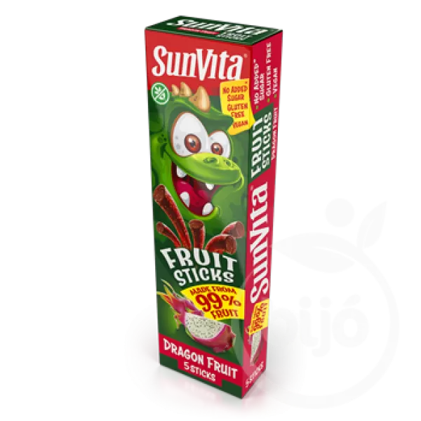 Napjaink kedvelt gyümölcs snackje a Sunvita gyümölcsszelet, különösen a sárkánygyümölcs ízében. A csomag 5 db, összesen 100 g-t tartalmaz, ahol a szeletek egyenként 20 g-osak.