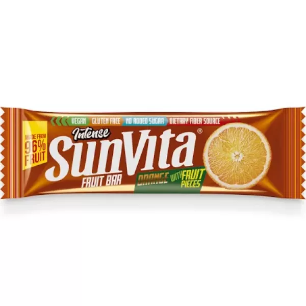 A Sunvita Intense gyümölcsszelet narancsos ízben, 30 g-os kiszerelésben kapható. Ideális választás, ha egy egészséges és ízletes snackre vágyik.
