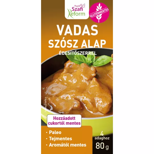 A Szafi Reform vadas szósz alap gluténmentes, hozzáadott cukortól mentes termék, amely kiváló választás az egészséges táplálkozás kedvelőinek. A szósz alap nem tartalmaz tejet, szóját, kukoricát, tartósítószereket és mesterséges ízfokozókat.