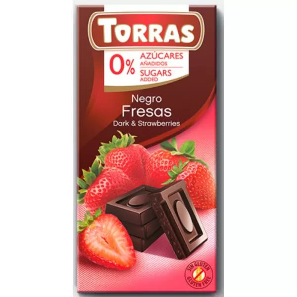 Torras Étcsokoládé Epres 75gA Torras csokoládé termékcsalád nagy kedvenc a gluténmentes vagy diabetikus étrendet és édesítőszerrel készült finomságokat kedvelő felnőttek és gyerekek számára különleges ízpárosításainak köszönhetően.