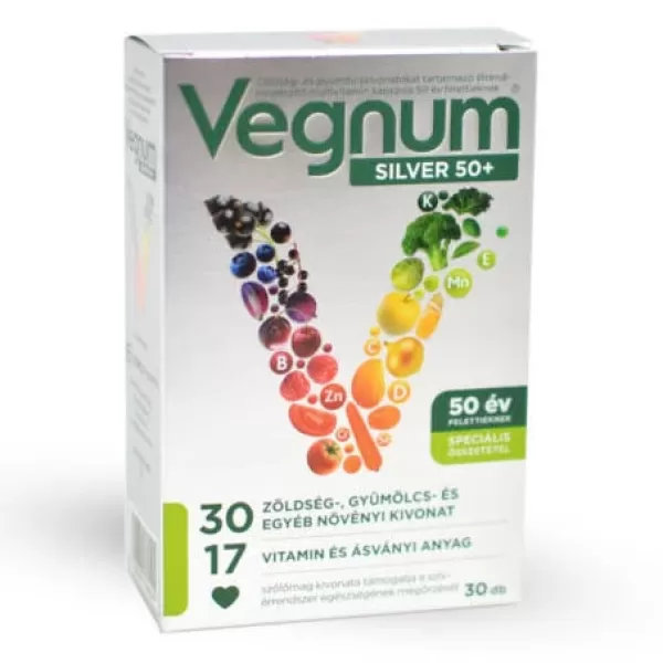 A Vegnum Silver 50+ étrendkiegészítő egy multivitamin formulát kínál, amelyet kifejezetten 50 év feletti felnőttek számára fejlesztettek ki. A kapszulák segítik az immunrendszer erősítését, a fáradtság csökkentését és az általános jólét fenntartását.