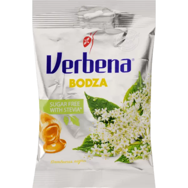 Töltött keménycukorka bodzavirág kivonattal, C vitaminnal és édesítőszerekkel.