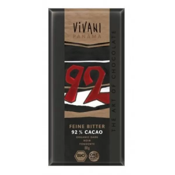 Vivani Bio csokoládé, étcsokoládé, 92% kakaótartalommal, kókusz virág cukorral.